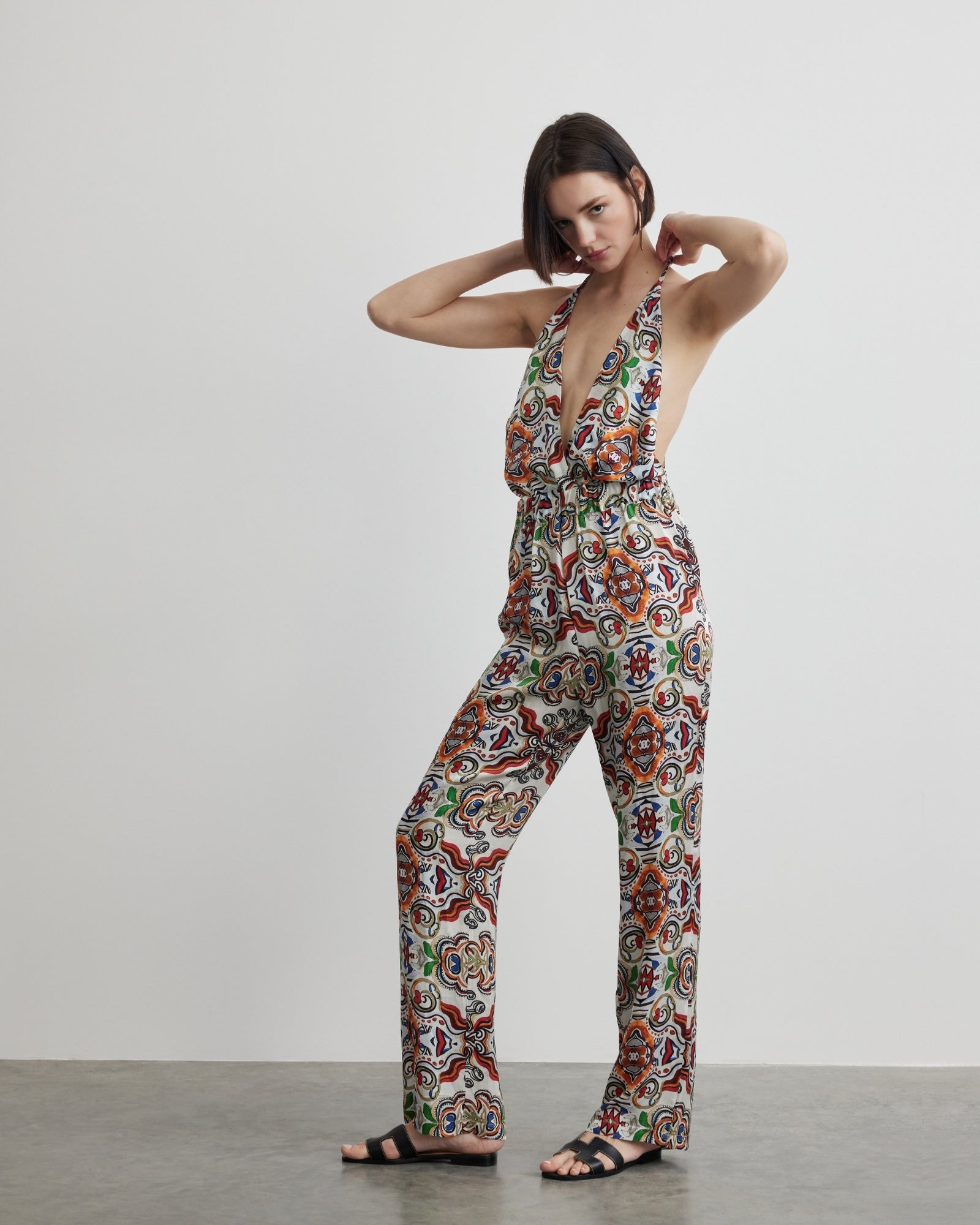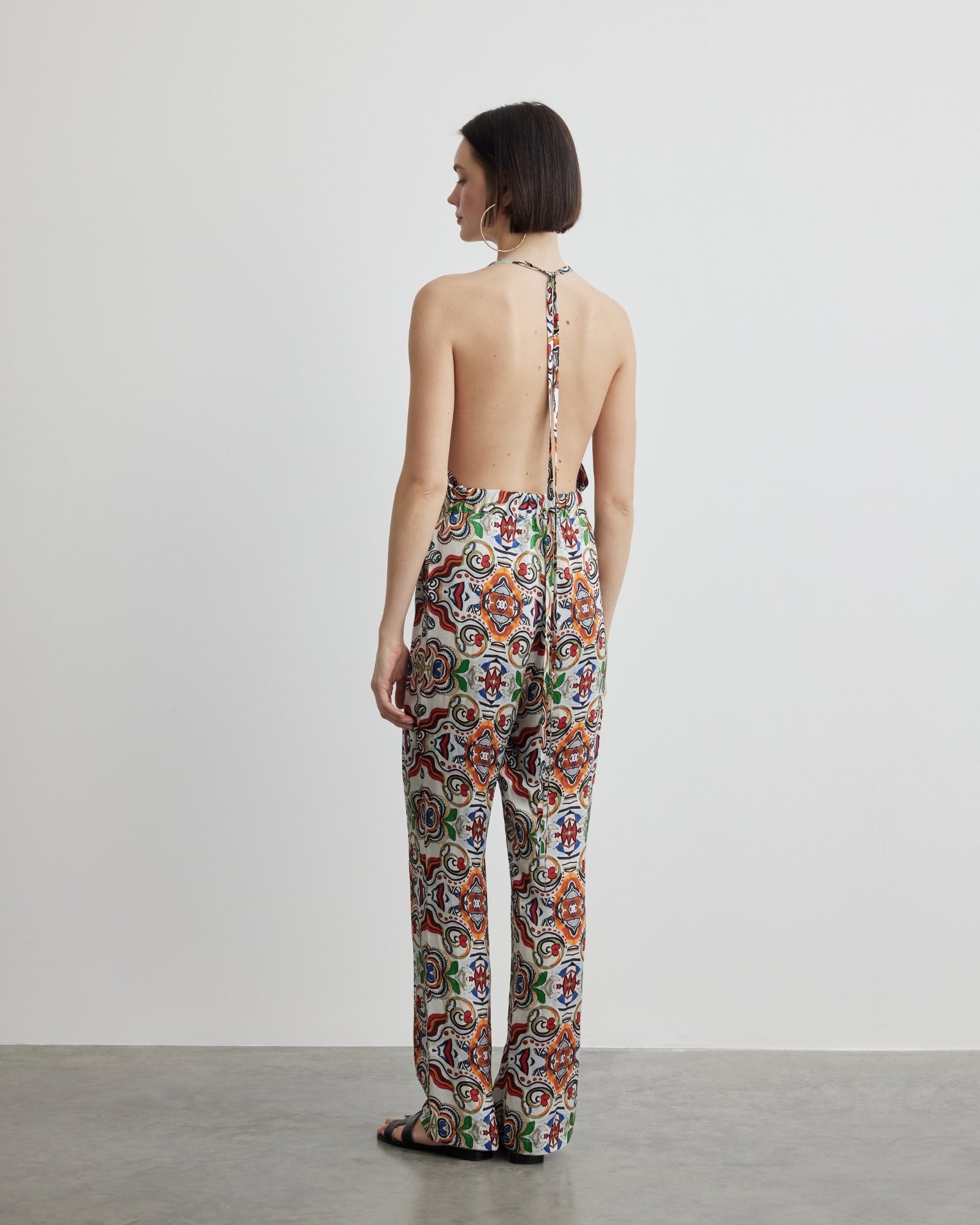 This long backless jumpsuit, made from vegan, breathable, and cooling 100% Satin fabric, is the perfect blend of elegance and comfort. Its fluid and soft texture fits like a second skin, moving effortlessly with you. The bold back detail adds a feminine touch, bringing a sophisticated flair to your style. With its eye-catching design, this jumpsuit ensures you feel unique and glamorous, whether in everyday life or at a special event. With this piece, you'll feel enveloped in elegance at every moment.