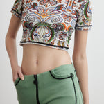 Made from 100% cotton, this crop T-shirt is the perfect fusion of natural comfort and casual style. Its lightweight and breathable texture softly embraces your skin, offering freshness throughout the day. With a modern and minimal cut, it adds an energetic and unique touch to your style, easily pairing with any outfit. Whether styled with jeans in the city or enjoying a light breeze by the beach, this T-shirt showcases your natural charm while delivering effortless comfort.