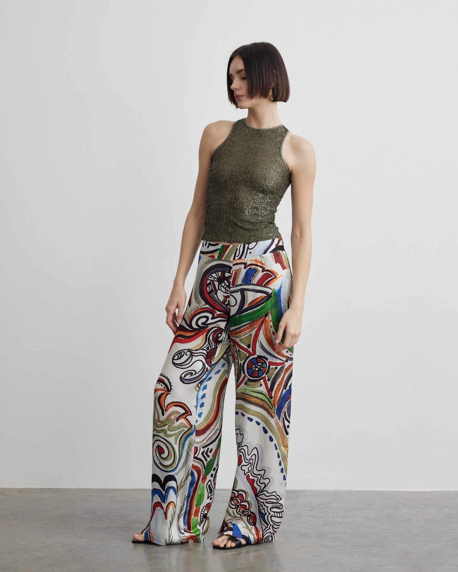 Made from 100% satin-textured fabric, these wide-leg palazzo pants are designed to make you feel light and elegant with every step. Their fluid and glossy texture flows like water, while the wide legs reflect your free spirit. The relaxed fit ensures all-day comfort, while their chic style makes them a seamless addition to both daily outfits and special moments. Whether enjoying a gentle seaside breeze or dancing under the stars, these pants will make you feel extraordinary at every moment.